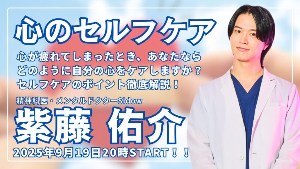 9月19日のヘルスケアアカデミーでは、メンタルドクターSidow先生こと、精神科医の紫藤佑介先生にお越しいただいて、「心のセルフケアについて」のセミナーを開催いたしました。